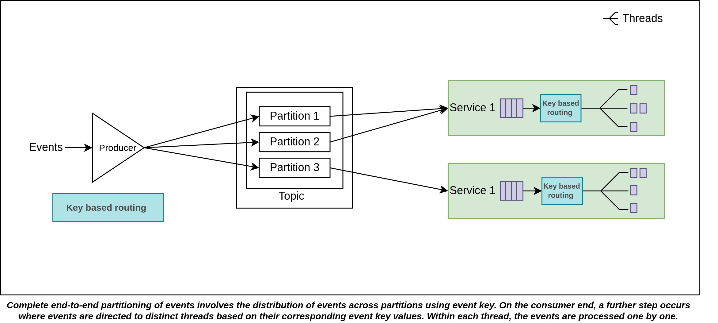 Key-based routing to partition is a technique employed in message queues to ensure optimal partitioning of events. This approach involves assigning events to specific partitions based on their keys. The fundamental idea behind this strategy is to use the key value to determine which partition the event should be directed to. Events that have the same key value are always directed to the same partition.