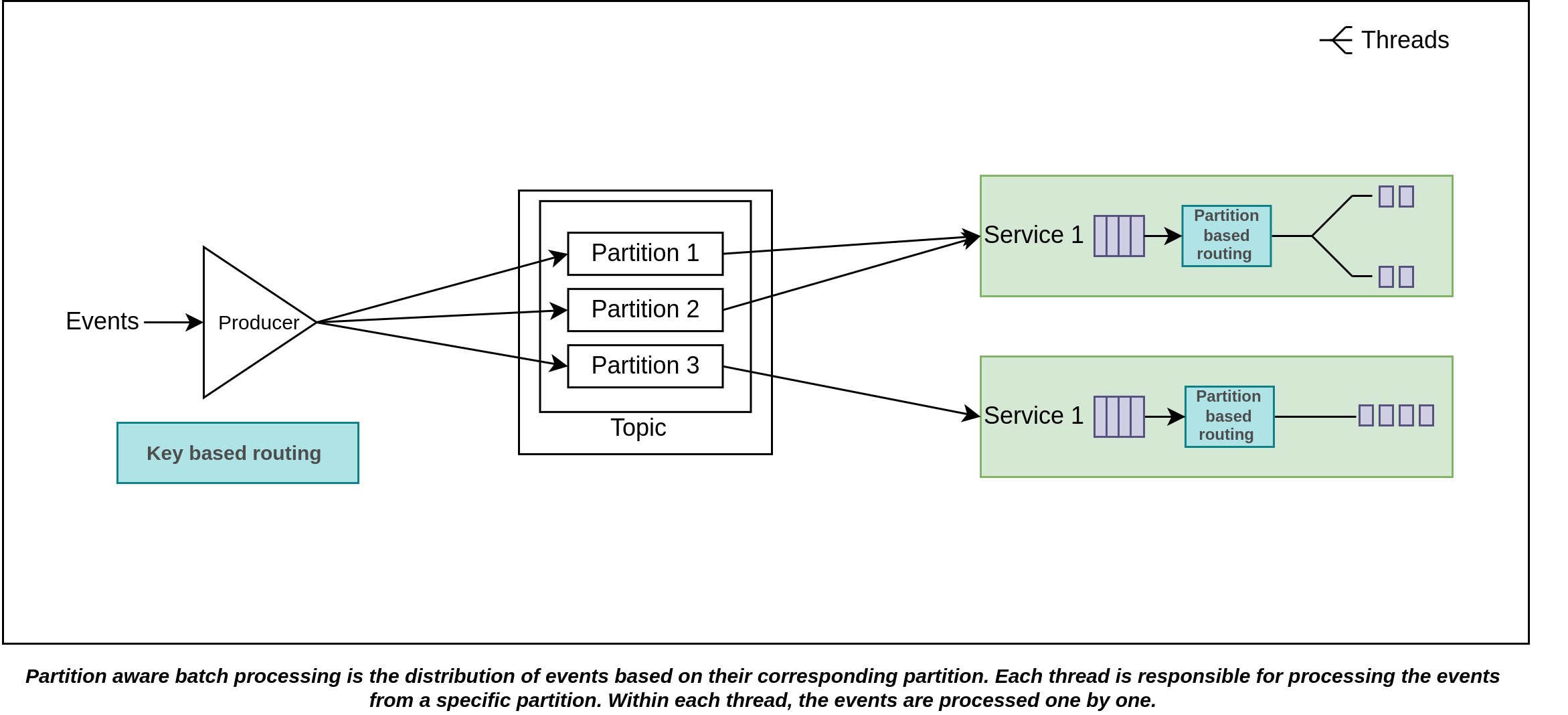 For every batch of events received, the function eachBatchHandlerWithKeyBasedPartition will be called. This function is responsible for dividing the events within the batch into multiple groups. These groups are then processed concurrently. Inside each group, the events are handled sequentially, one after the other.