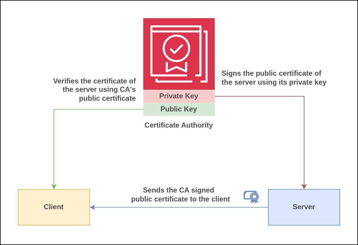 The CA issues certificates to each individual service in the microservices network. The Certificate Authority (CA) is responsible for putting its digital signature on the certificate of a service, which includes the service's public key, using the CA's own private key.
